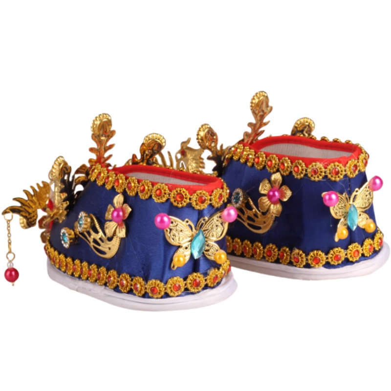 泰山奶奶绣花鞋,又称“还愿鞋”“菩萨鞋”“娘娘凤鞋”,是民间信仰中用于供奉泰山碧霞元君(俗称“泰山奶奶”)的传统手工艺品。信徒为祈求平安、子嗣、姻缘或还愿,常亲手缝制精美绣花鞋供奉于泰山奶奶庙中,寓意“步步登高、福履安康”。此俗源于明清,流传于华北、山东等地,鞋面多绣龙凤、莲花、福寿等吉祥图案,色彩鲜艳,工艺细腻。在部分堂口信仰中,亦将此类绣鞋用于供奉妈祖、喜神等女性神祇,表达对女神护佑的感恩与虔诚。一双小小绣鞋,承载着百姓对美好生活的祈愿与信仰的温情。