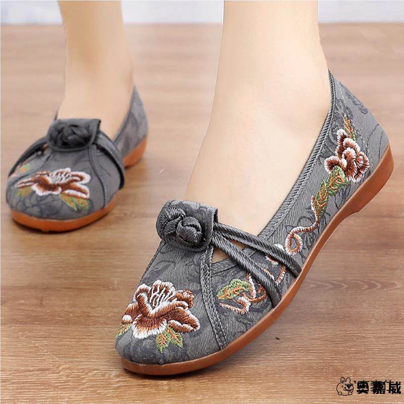 老北京布鞋女春夏秋季平底单鞋妈妈鞋软底防滑绣花鞋民族风跳舞鞋