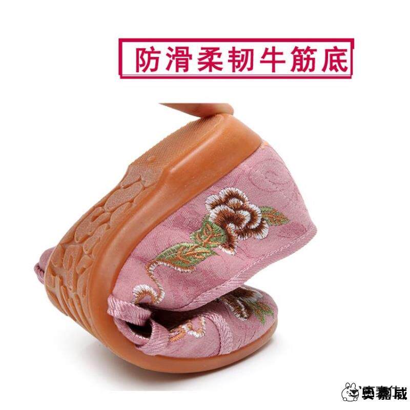 包头老北京绣花拖日常居家防滑女凉拖低跟内增高春夏室外牛筋布拖