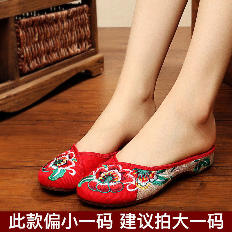 天猫老北京布鞋女夏季新款民族风绣花鞋芙蓉花包头透气拖鞋居家凉鞋子