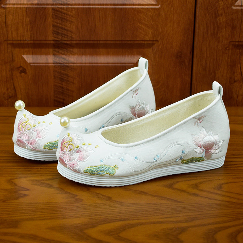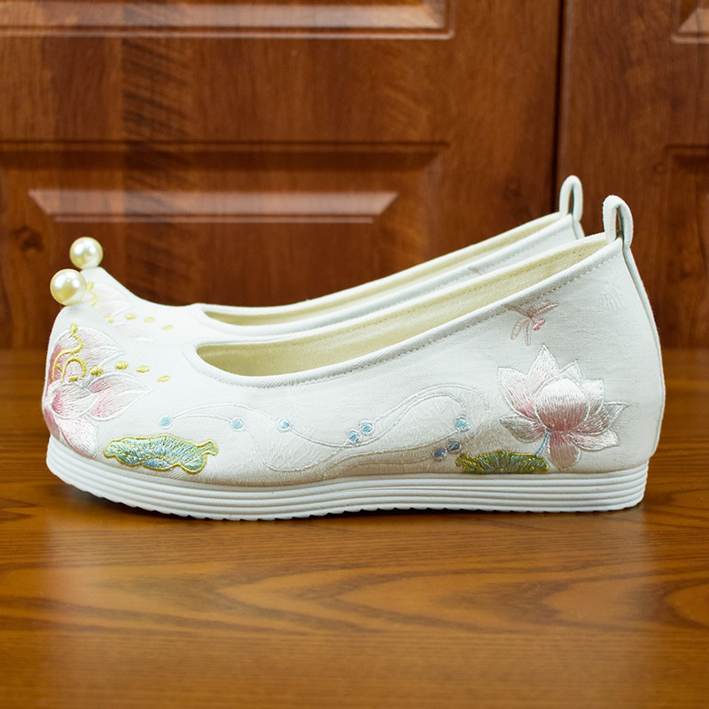 新中式国风小白鞋增高古风汉服鞋子女民族风禅意女鞋旗袍绣花鞋