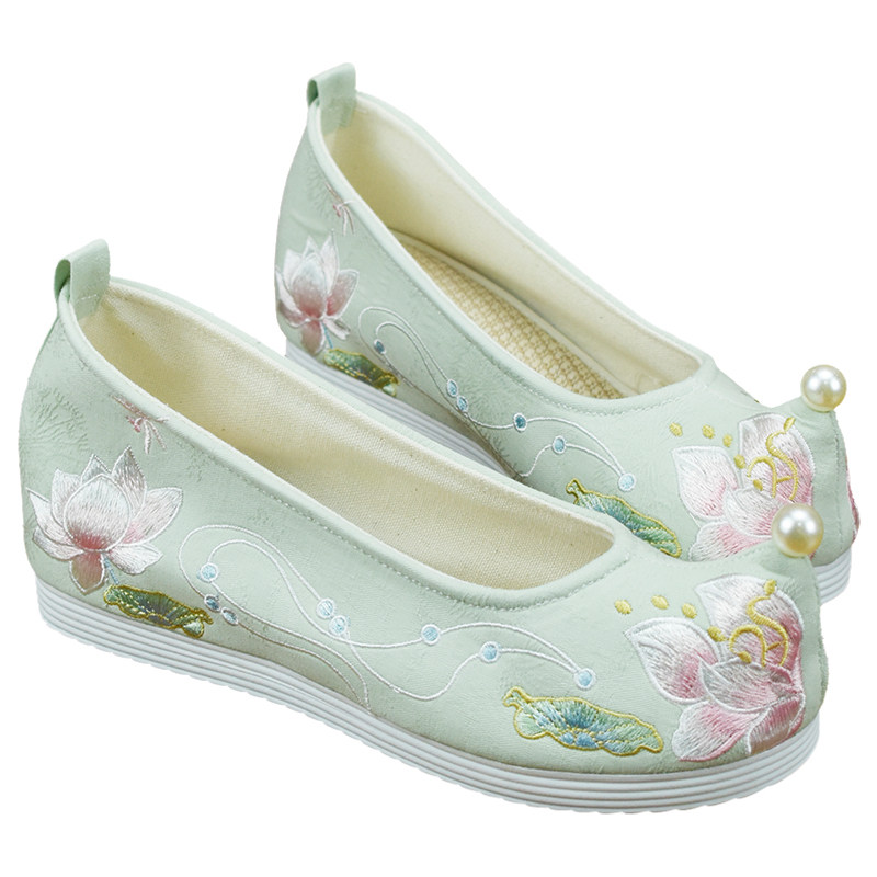 淘新中式国风小白鞋增高古风汉服鞋子女民族风禅意女鞋旗袍绣花鞋