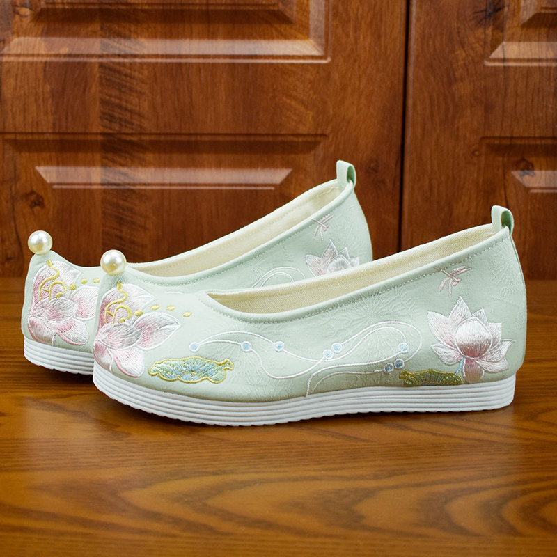 锦袍仙古装汉服鞋履,专为追求古典韵味的女性设计。融合传统汉元素与现代舒适理念,推出女款增高翘头履、布鞋及弓鞋等经典款式。鞋面采用精致手工绣花,纹样雅致,寓意吉祥;翘头设计源自古代礼制,彰显端庄气质,同时内置隐形增高垫,提升身形比例。精选优质棉麻布料,透气柔软,贴合脚型,适合日常穿搭或汉服雅集。无论是搭配齐胸襦裙、曲裾深衣,还是现代汉元素服饰,皆能展现东方女性的温婉与风雅。锦袍仙致力于传承东方美学,让每一步都踏出古韵风华。