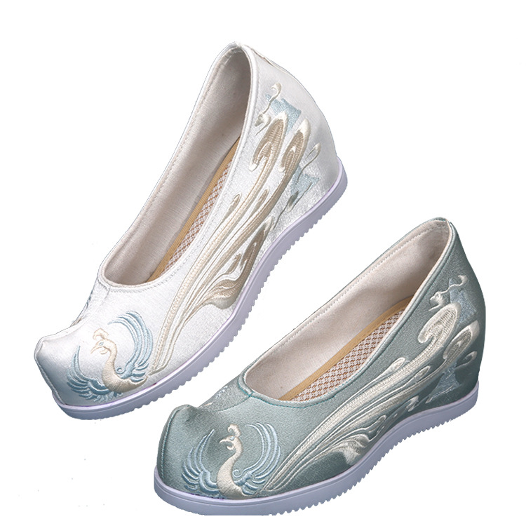 新款高跟汉服鞋融合传统汉元素与现代时尚设计,专为追求古典韵味的女性打造。鞋面采用精致手工刺绣,图案涵盖花鸟、云纹等传统元素,色彩雅致,尽显东方美学。翘头弓鞋设计灵感源自古代弓鞋,线条流畅,优雅复古,搭配内增高设计,既提升身高又舒适耐穿。鞋身选用优质棉麻或绸缎面料,内里柔软透气,适合日常穿搭或汉服出行。无论是搭配齐胸襦裙还是改良汉服,都能展现浓郁的民族风情与古典气质。这款古风绣花鞋不仅是服饰的点睛之笔,更是文化传承与现代审美的完美结合,让传统之美在步履间悄然绽放。