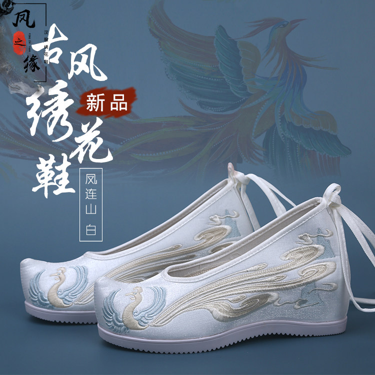 淘宝新款高跟汉服鞋女古风绣花鞋汉元素古装翘头弓鞋内增高民族风布鞋