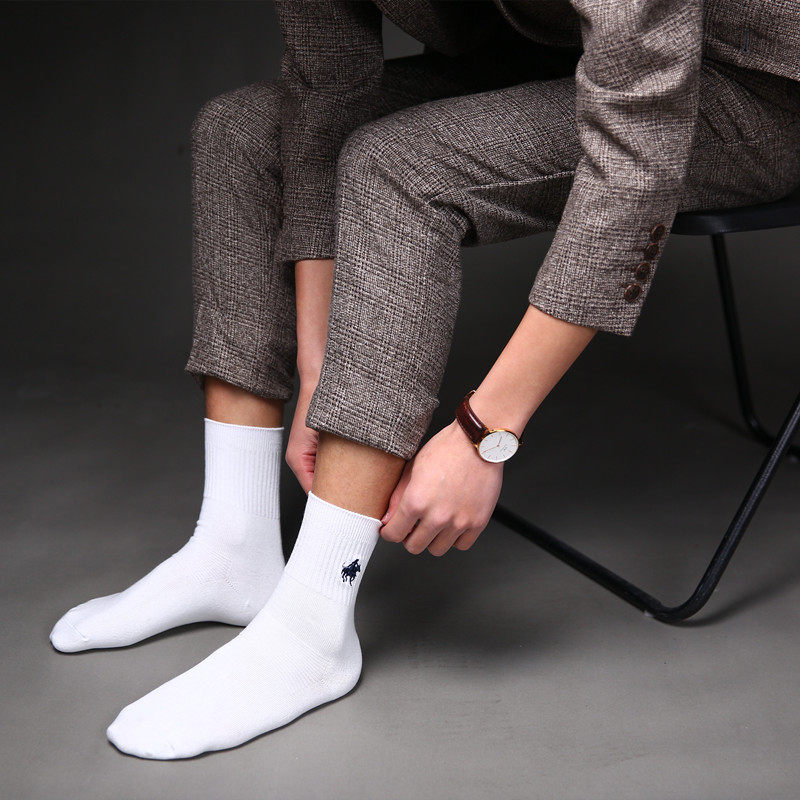 淘宝Jadely Paul 保罗男袜子纯棉中筒防臭简约商务纯色秋冬款全棉长袜