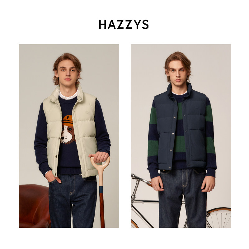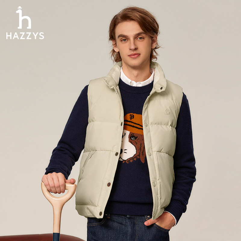天猫【羽绒马甲】Hazzys哈吉斯冬季休闲男士立领时尚舒适轻暖上衣外套