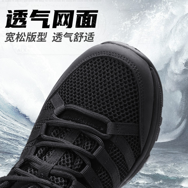 秋季新款男女鞋黑色户外训练鞋软底防滑运动休闲鞋网面透气作训鞋