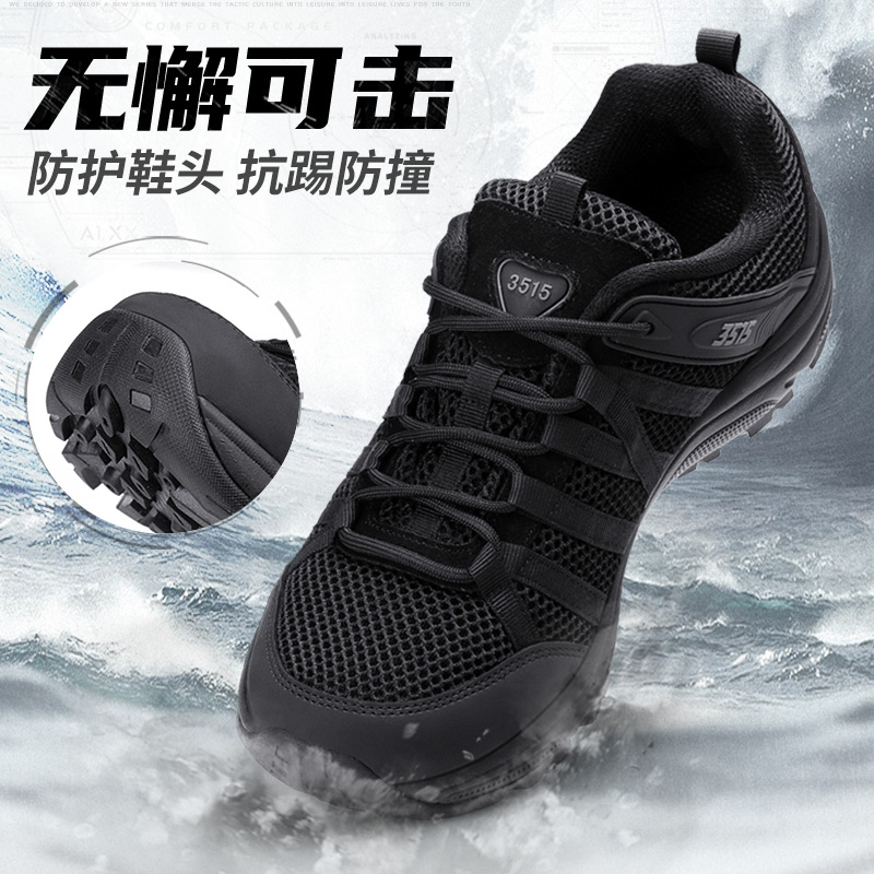 强人3515正品训练鞋男超轻透气体能战术鞋新式黑色户外通勤工作鞋