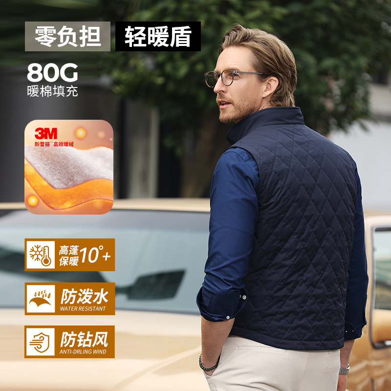 【零负担3M棉】希努尔Grayber都市轻量化填充新雪丽棉三防马甲,采用3M™新雪丽高效暖绒填充,轻盈保暖,克重仅约300克,实现“零负担”穿着体验。外层融合三防科技(防水、防油、防污),轻松应对都市多变天气与日常污渍。立体剪裁贴合身形,兼顾时尚与功能性,适合通勤、户外等多场景穿搭。简约都市风格设计,搭配灵活,轻松打造干练造型。无论是春秋单穿,还是冬季内搭,皆能提供持久温暖与舒适体验,是现代都市人群追求品质与实用兼具的理想之选。