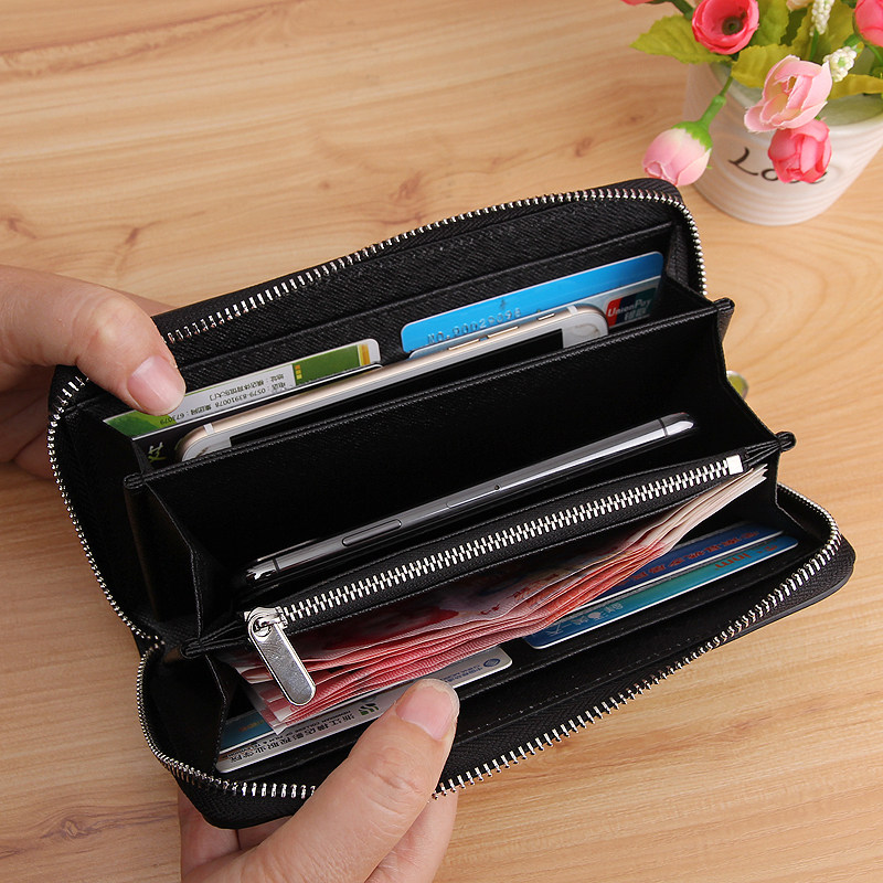 七匹狼品牌男士手拿包头层牛皮双拉链大容量多功能休闲潮真皮钱包