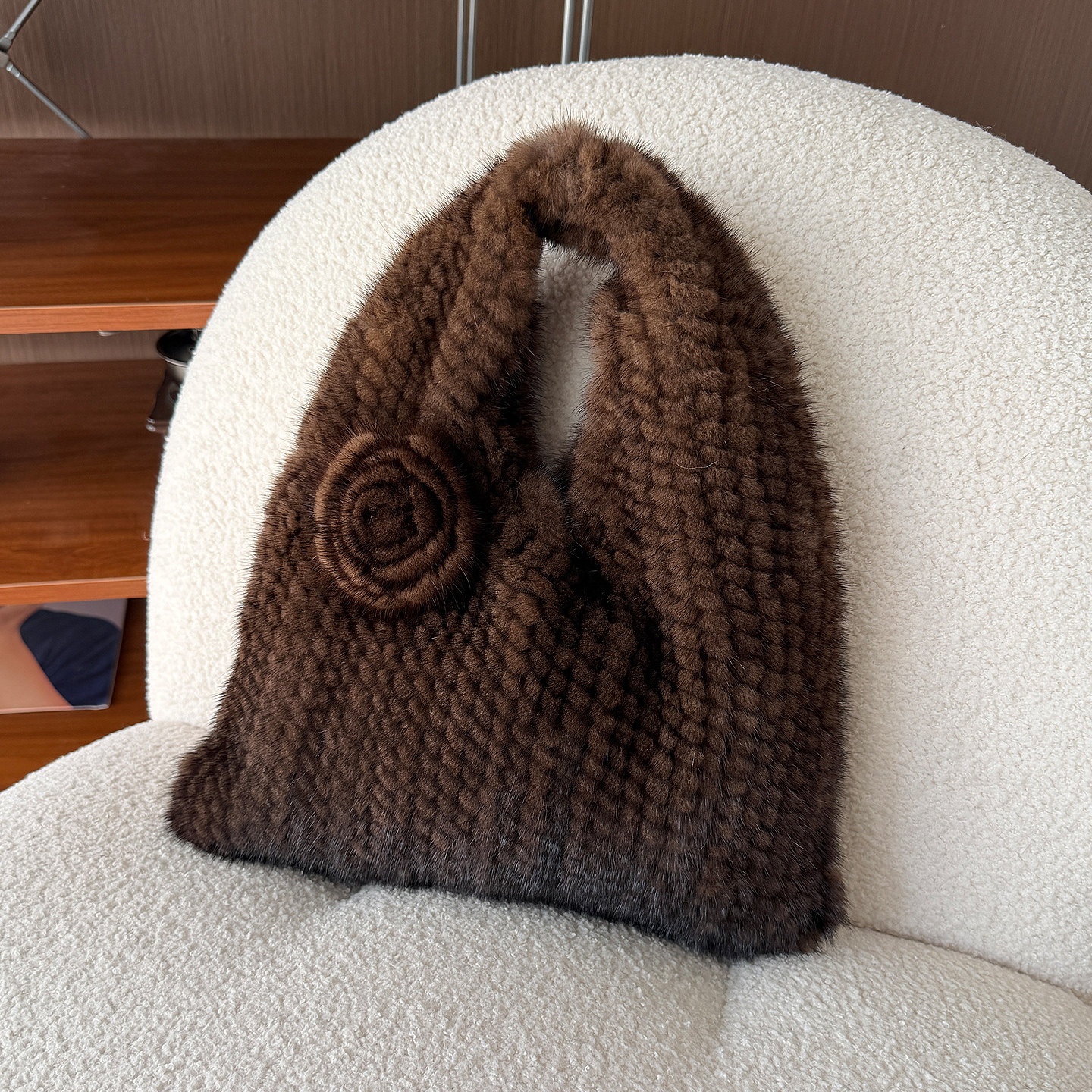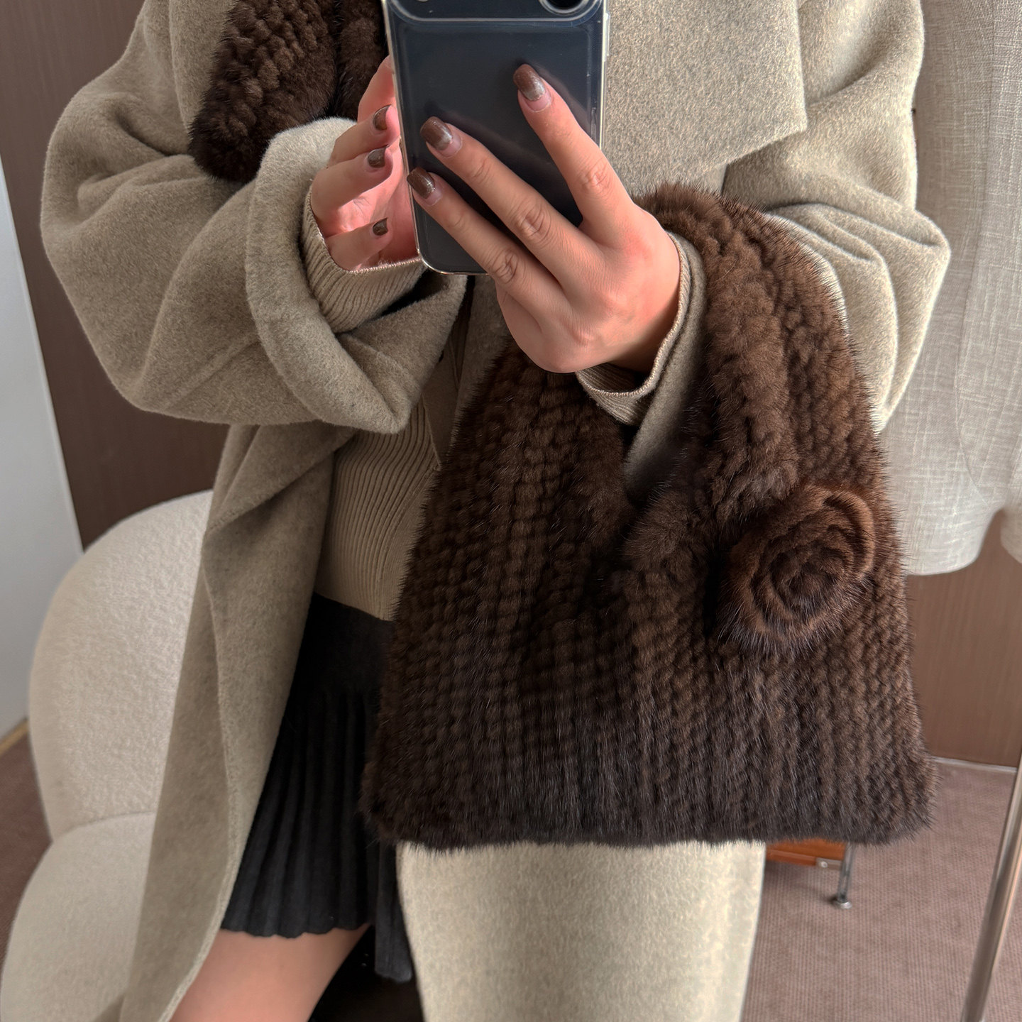 全新推出水貂毛编织三角手拎手拿包,集可爱、时尚与奢华于一身。精选优质水貂毛,触感柔软细腻,光泽自然,尽显高级质感。独特三角造型设计,搭配精致编织工艺,兼具立体美感与实用功能。可手拎、手拿或挂于腕间,轻松应对多种场合。无论是搭配大衣、裙装还是休闲装束,都能瞬间提升整体造型的时髦度。小巧身形容纳 essentials,实用又不失格调。这款皮草包包不仅是冬日里的温暖配饰,更是彰显品味与个性的时尚宣言,百搭又吸睛,为现代女性增添一抹奢华魅力。