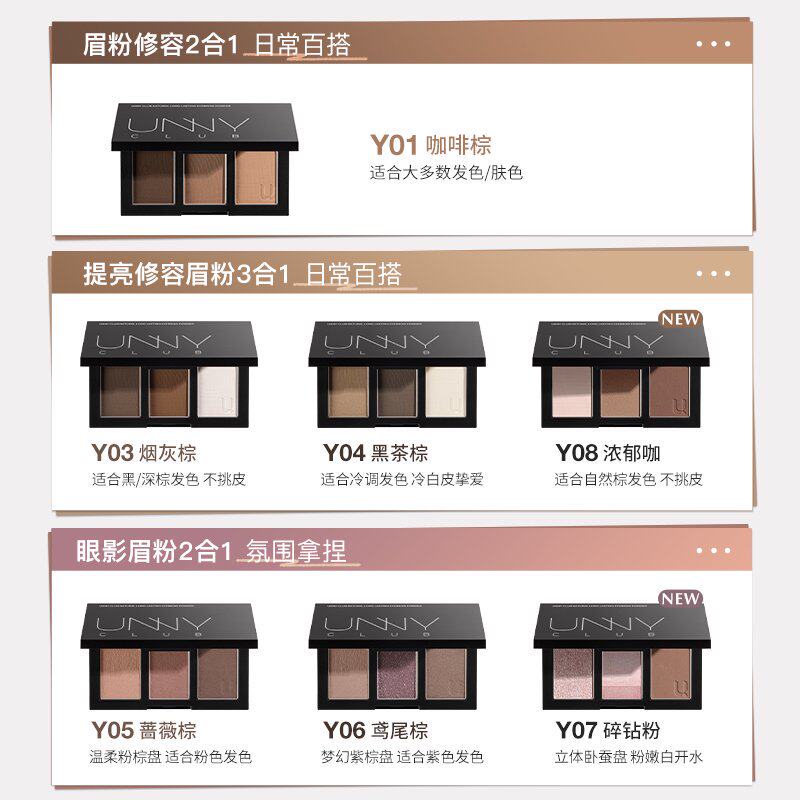 淘宝UNNY三色眉粉盘眉笔官方正品防水防汗不脱色持久新手野生眉