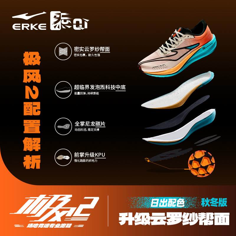 天猫鸿星尔克极风2.0学生体测跑步鞋男减震回弹运动鞋专业训练鞋男鞋