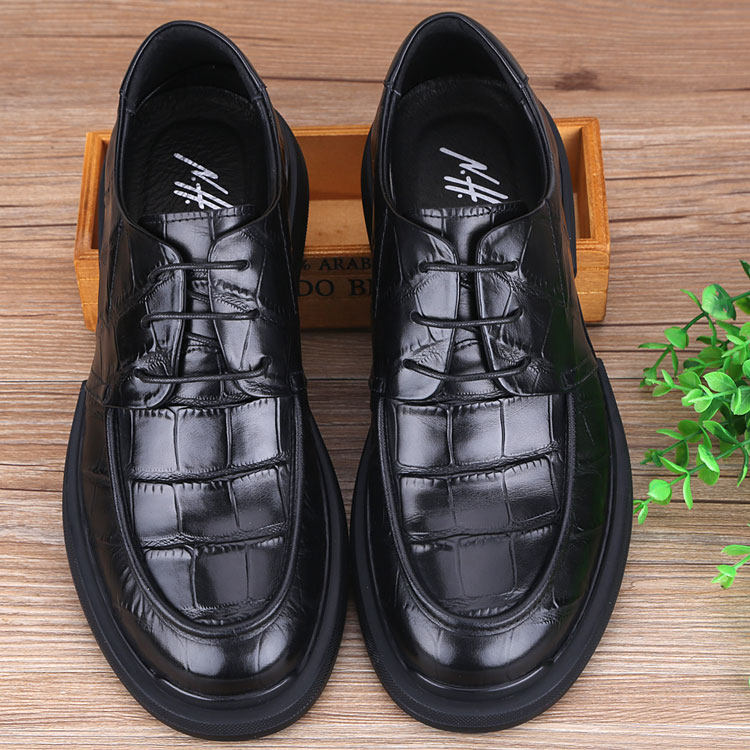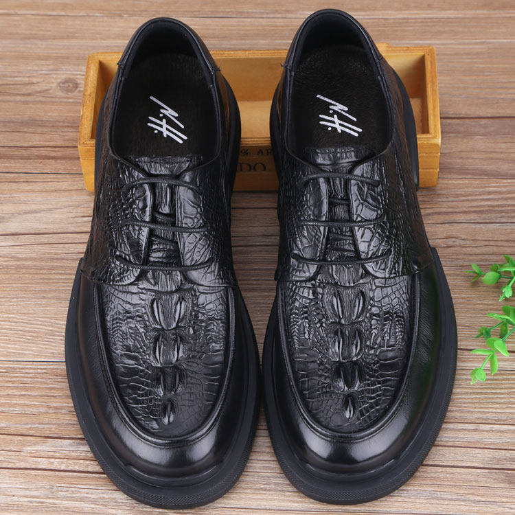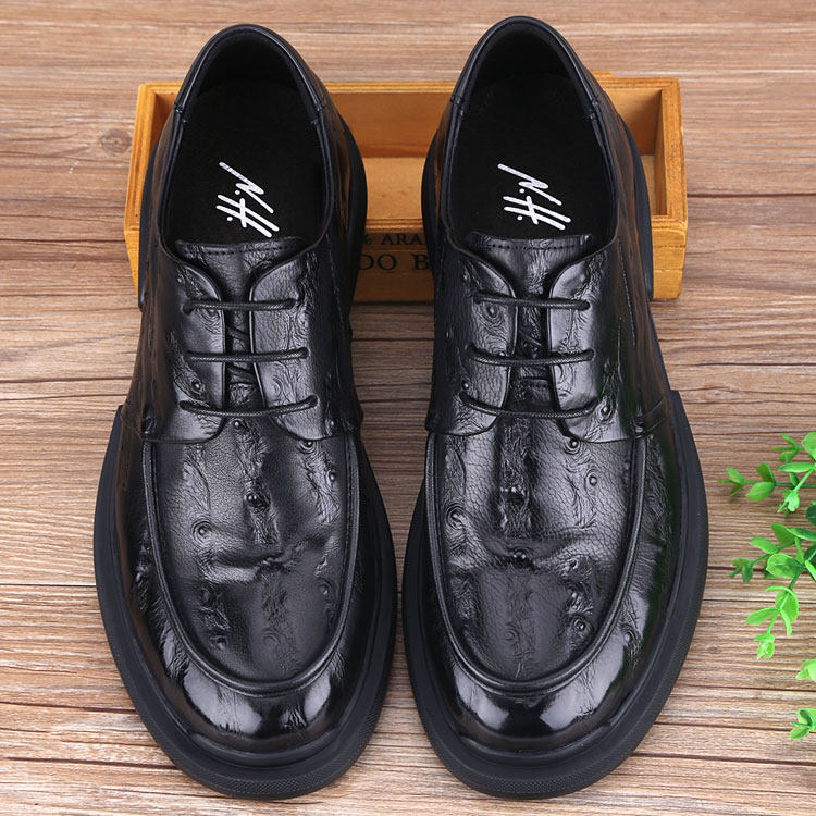 淘宝秋季男鞋商务休闲皮鞋厚底真皮软底软面英伦大头皮鞋加肥款透气