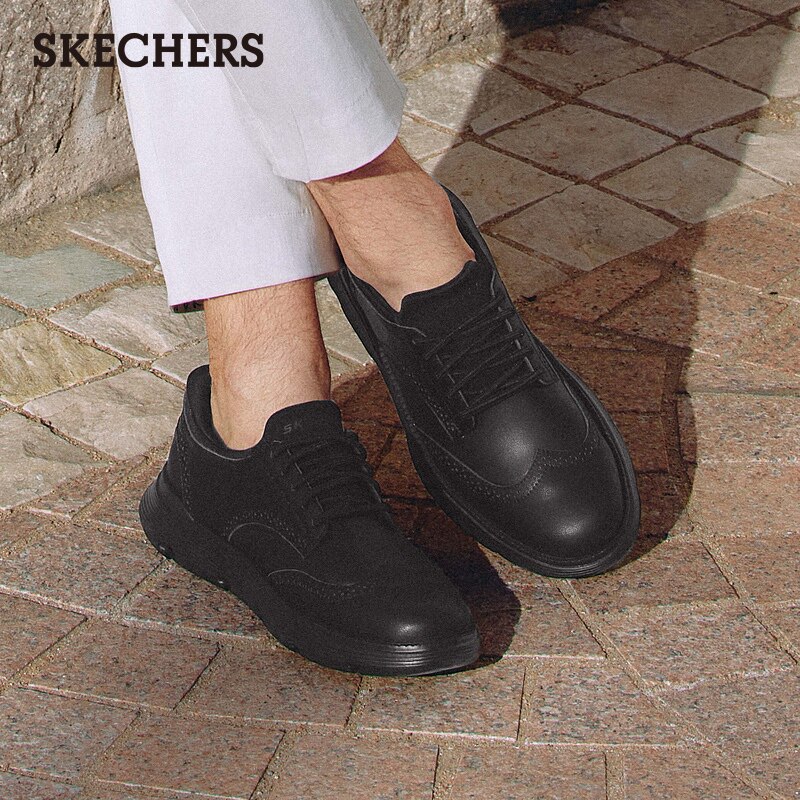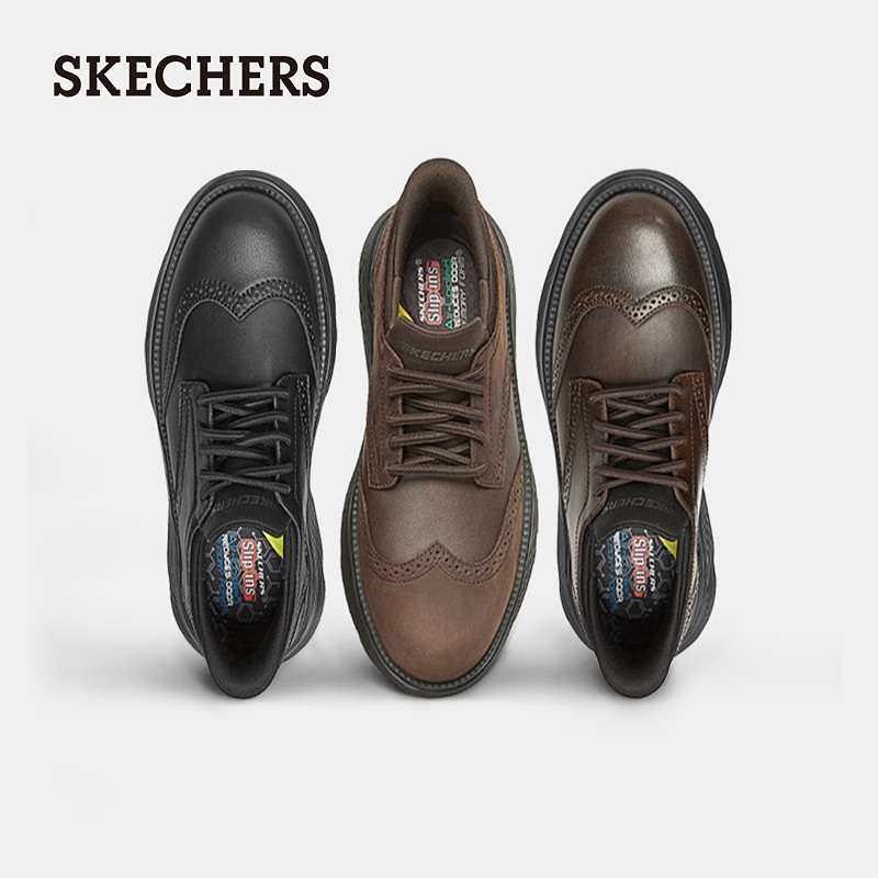 天猫斯凯奇闪穿鞋slipins2026秋新款男鞋一脚蹬通勤商务休闲黑色皮鞋