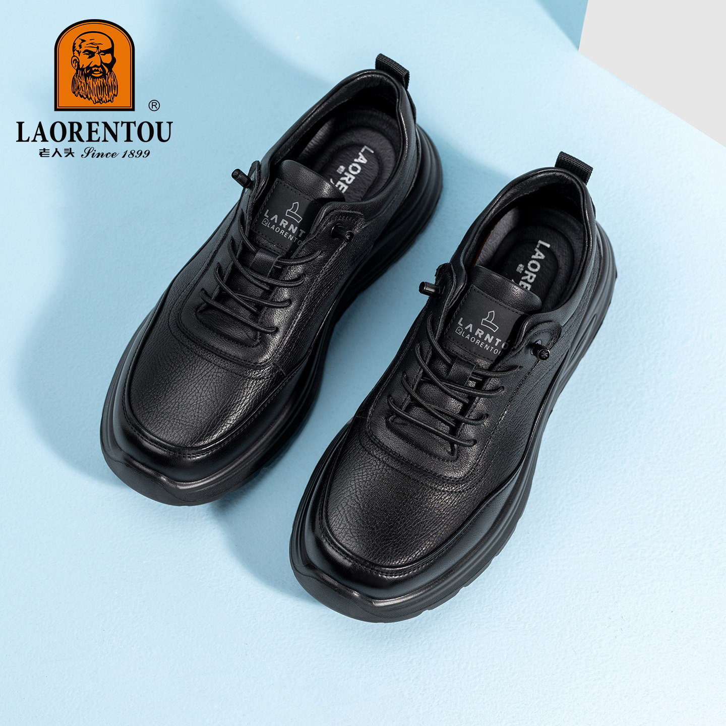 天猫【透气牛皮】老人头运动休闲鞋子男新款真皮皮鞋厚底男鞋百搭板鞋