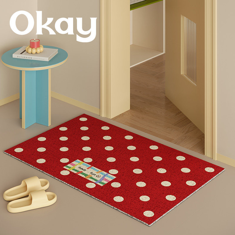 淘宝okay复古波点丝圈入户地垫门口家用可裁剪 pvc耐脏防滑除尘脚垫子
