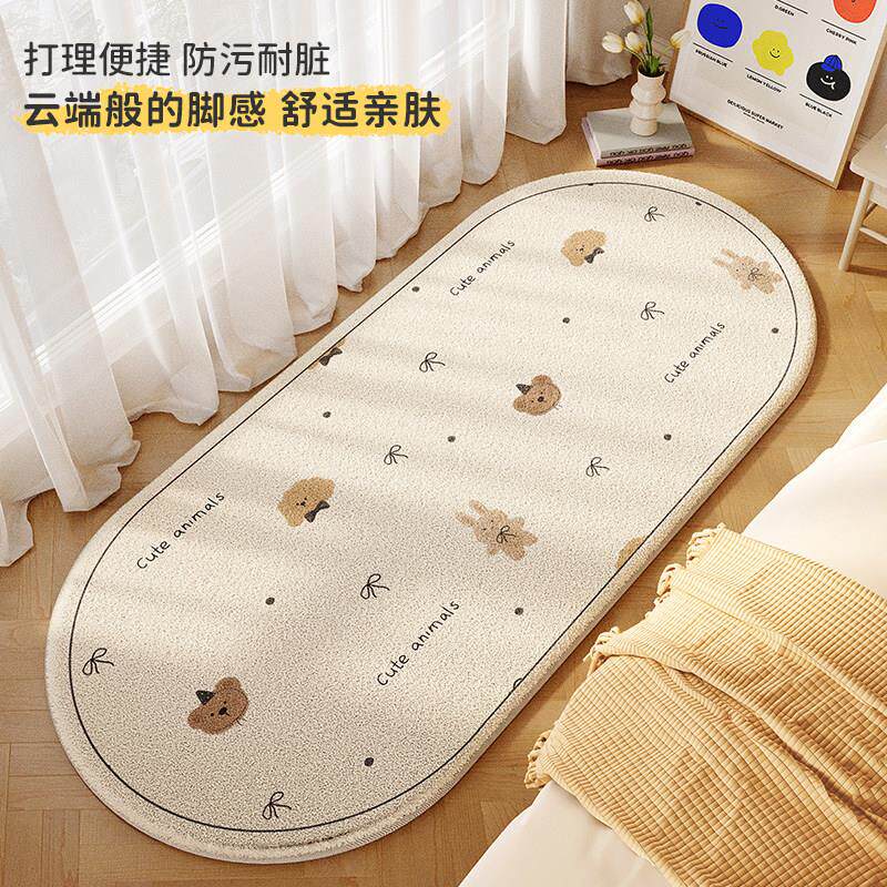 淘宝椭圆形床边毯轻奢高级感卧室地毯儿童房可爱地垫加厚防滑彷羊绒垫