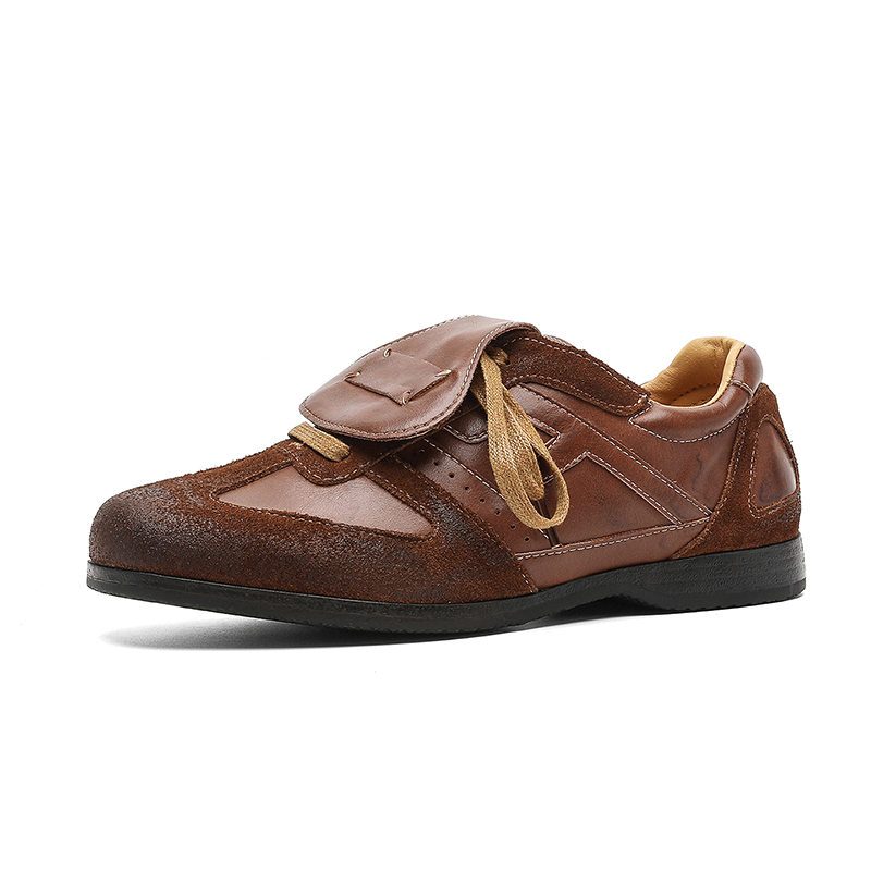 新款水洗马皮透气做旧复古休闲皮鞋男鞋增高德训鞋通勤训练拳击鞋