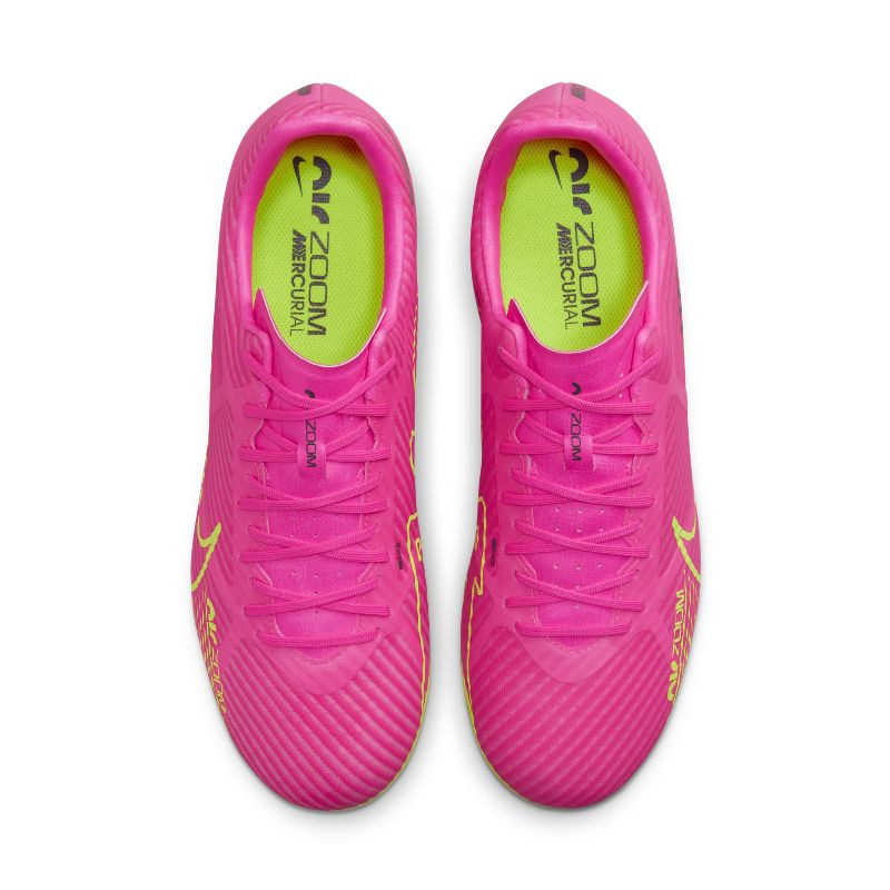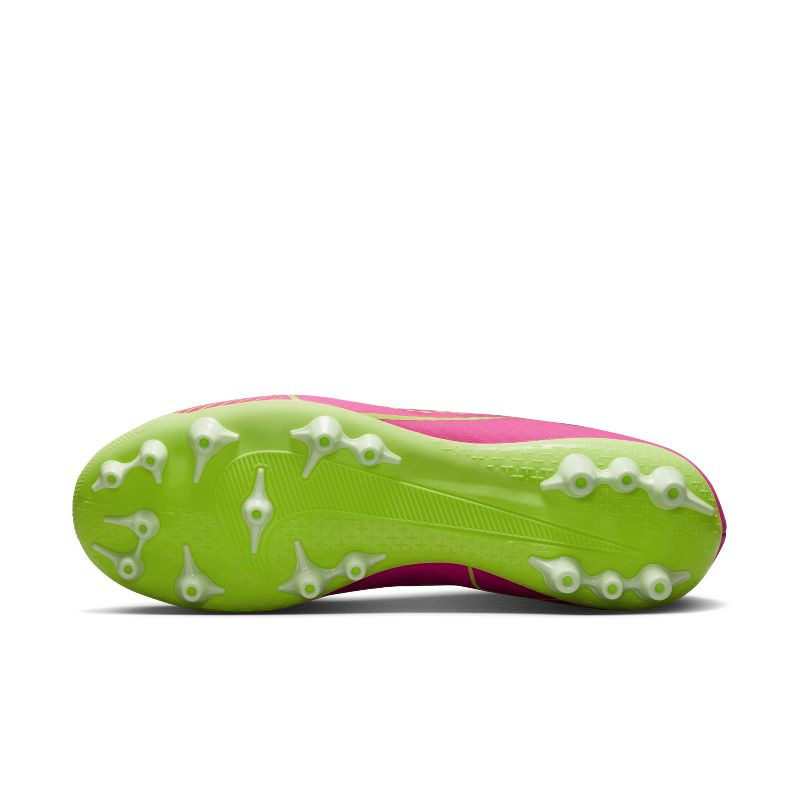 Nike Air Zoom Vapor 15 Academy AG 粉黄男款足球鞋(型号:DJ5630-605)专为人工草场地设计,融合速度与精准。鞋面采用轻质合成材质搭配透气网眼,提供贴合脚型的包裹感,前掌内置Zoom Air气垫,带来灵敏回弹与爆发力。粉黄撞色设计活力十足,彰显个性风格。AG鞋钉布局优化抓地力与转向灵活性,适合快速突破与急停变向。整体轻量化构造减轻足部负担,提升场上表现。无论是训练还是比赛,这款球鞋都能为追求速度与技术的球员提供可靠支持,是人工草场上的理想选择。