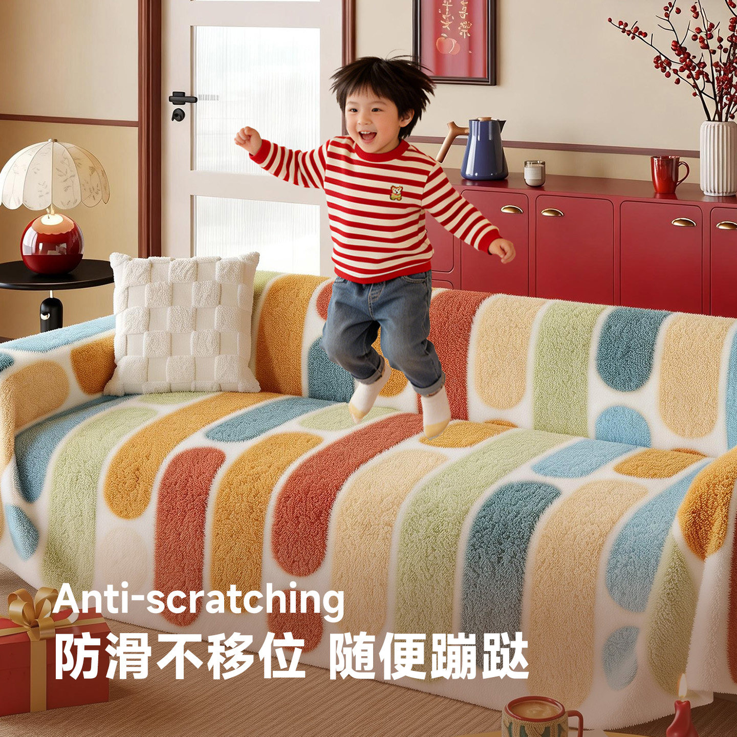 2026年新款现代简约加厚沙发垫,专为冬季温暖舒适而设计。采用高品质毛绒面料,触感柔软亲肤,加厚填充层有效提升坐感,久坐不塌陷。融入当下流行的“多巴胺”色彩元素,明亮活泼,瞬间点亮家居氛围。底部配备防滑颗粒设计,稳固贴合沙发,不易移位;表面抗抓耐磨工艺,有效防猫抓,延长使用寿命。适用于多种沙发类型,安装简便,易拆洗打理。无论是自用还是送礼,这款沙发垫都兼顾美观与实用,为冬日居家增添温暖与时尚气息,是现代家庭的理想之选。