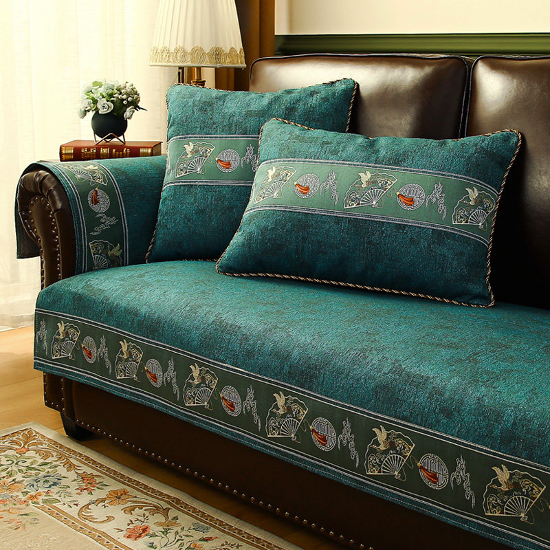 天雪尼尔沙发垫四季通用防滑坐垫沙发套子简约现代北欧实木靠背巾夏