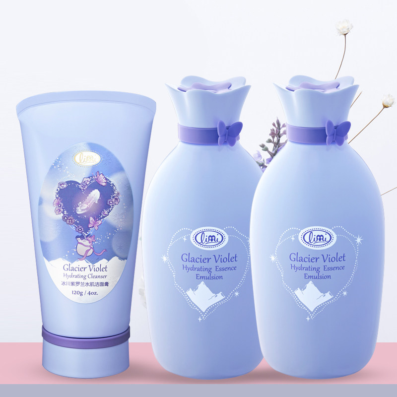 淘宝limi里美冰川紫罗兰套装里美冰川紫罗兰水肌套装洁面水乳液眼霜