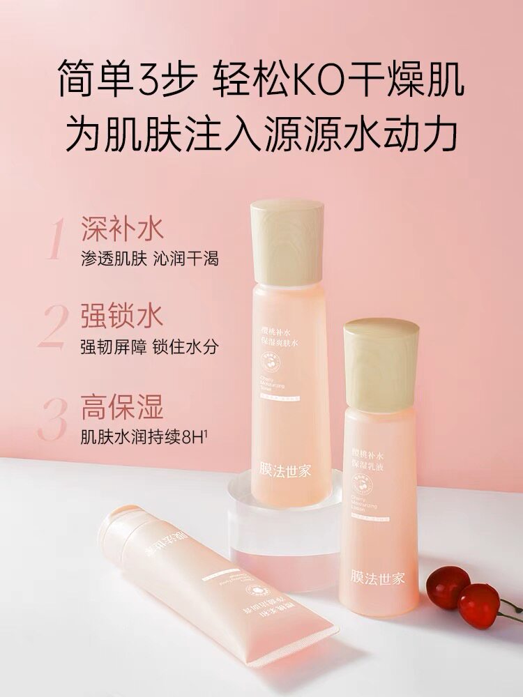 天猫膜法世家樱桃补水套装洁面水乳液护肤品补水保湿提亮肤色干皮可用