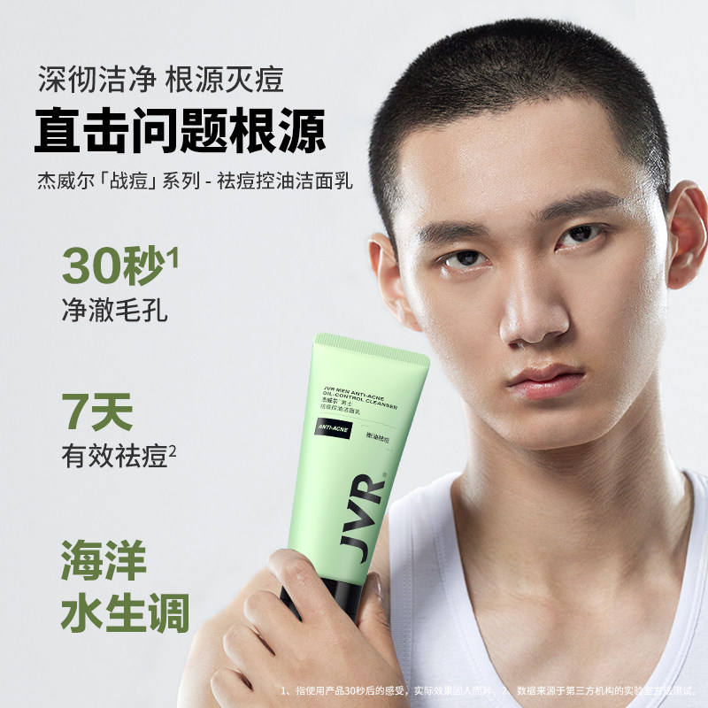 天猫杰威尔男士专用洗面奶青少年去黑头祛痘控油洁面乳液夏季清爽套装