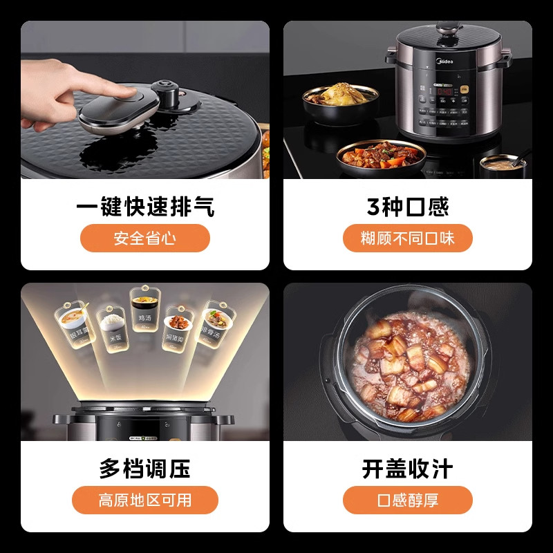 美的电压力锅家用5升双胆电高压锅饭煲全自动多功能官方旗舰正品