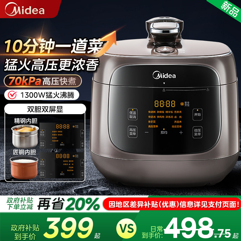 美的新款电压力锅家用0涂层双胆高压电饭煲多功能正品官方旗舰店
