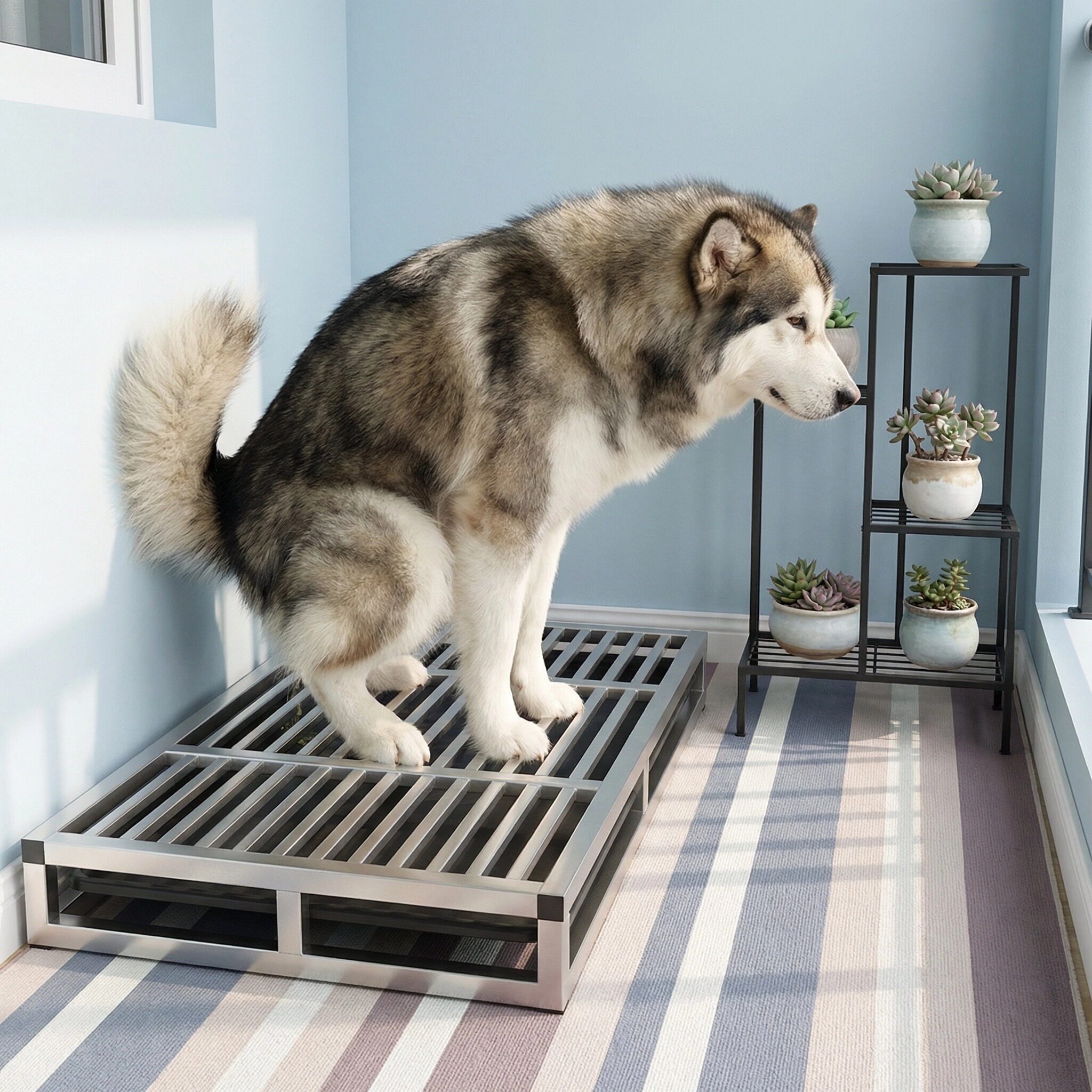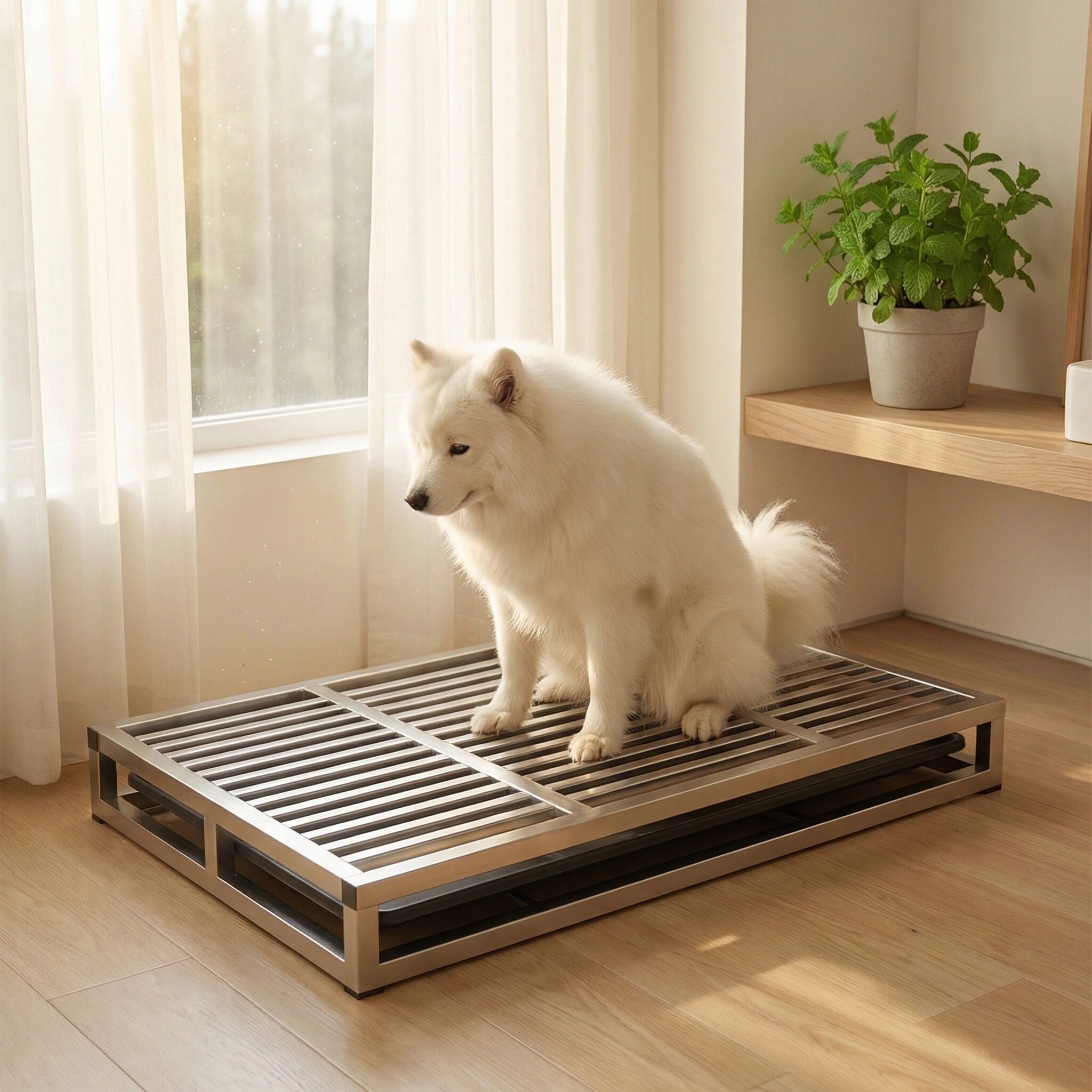 这款专为中型犬和大型犬设计的狗厕所,采用优质不锈钢材质,坚固耐用、防腐防锈,易于清洁。加高边缘有效防止尿液外溅,保持环境整洁。超大尺寸便盆空间充裕,适合大型犬自由转身,避免踩到排泄物。搭配专用定点尿垫和猫砂诱导剂,能快速引导宠物在固定位置如厕,提升训练效率。整体结构稳固防滑,边缘光滑不伤爪,适合室内外使用。无论是家庭养宠还是训练初期,这款狗厕所都能为爱犬提供舒适、卫生的如厕体验,是提升居家清洁与宠物行为管理的理想之选。