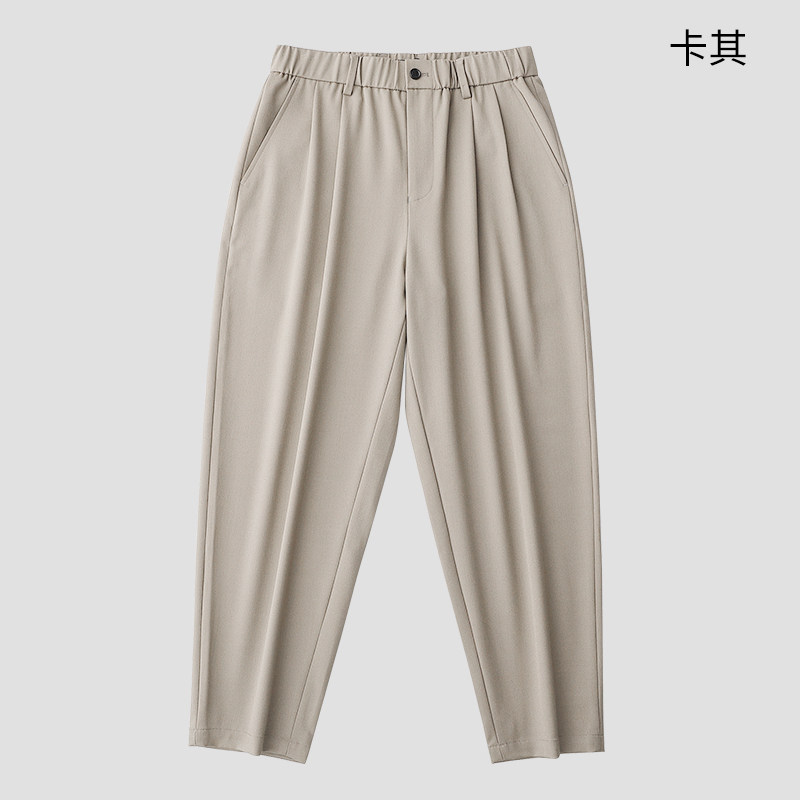天猫瑞谷松紧腰阔腿九分裤男宽松垂感西裤加厚廓形春秋新款休闲裤男冬