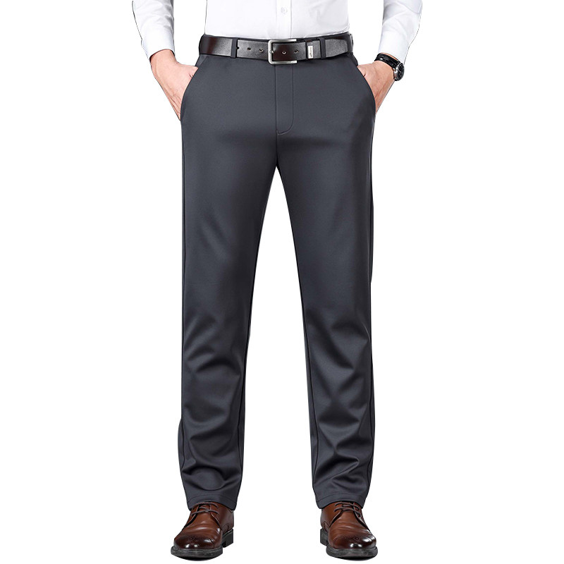 淘老爷车春夏薄款桑蚕丝西裤男中年宽松免烫西装裤商务正装直筒长裤