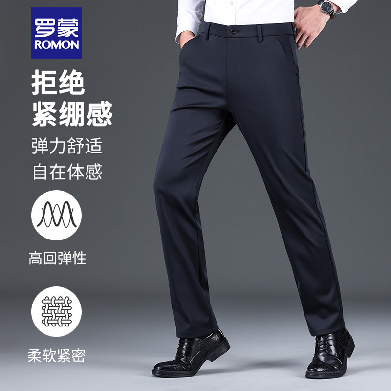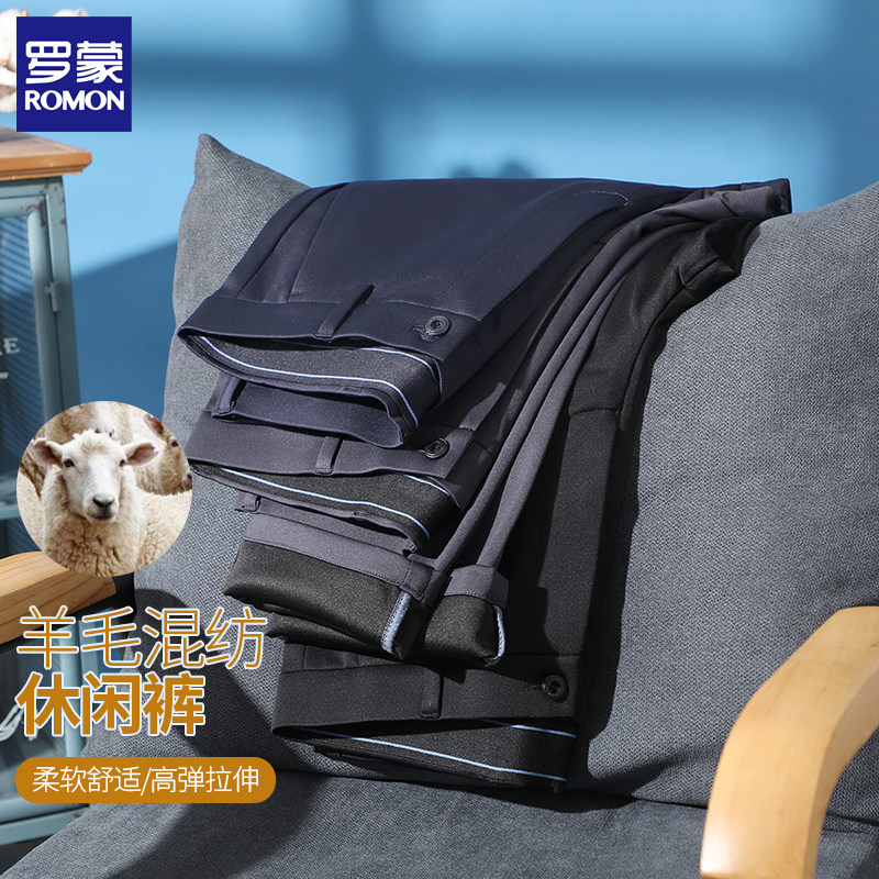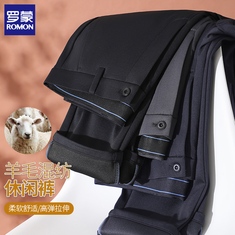 淘宝罗蒙男士羊毛混纺高弹力商务裤休闲裤冬季西裤厚款加绒保暖直筒裤