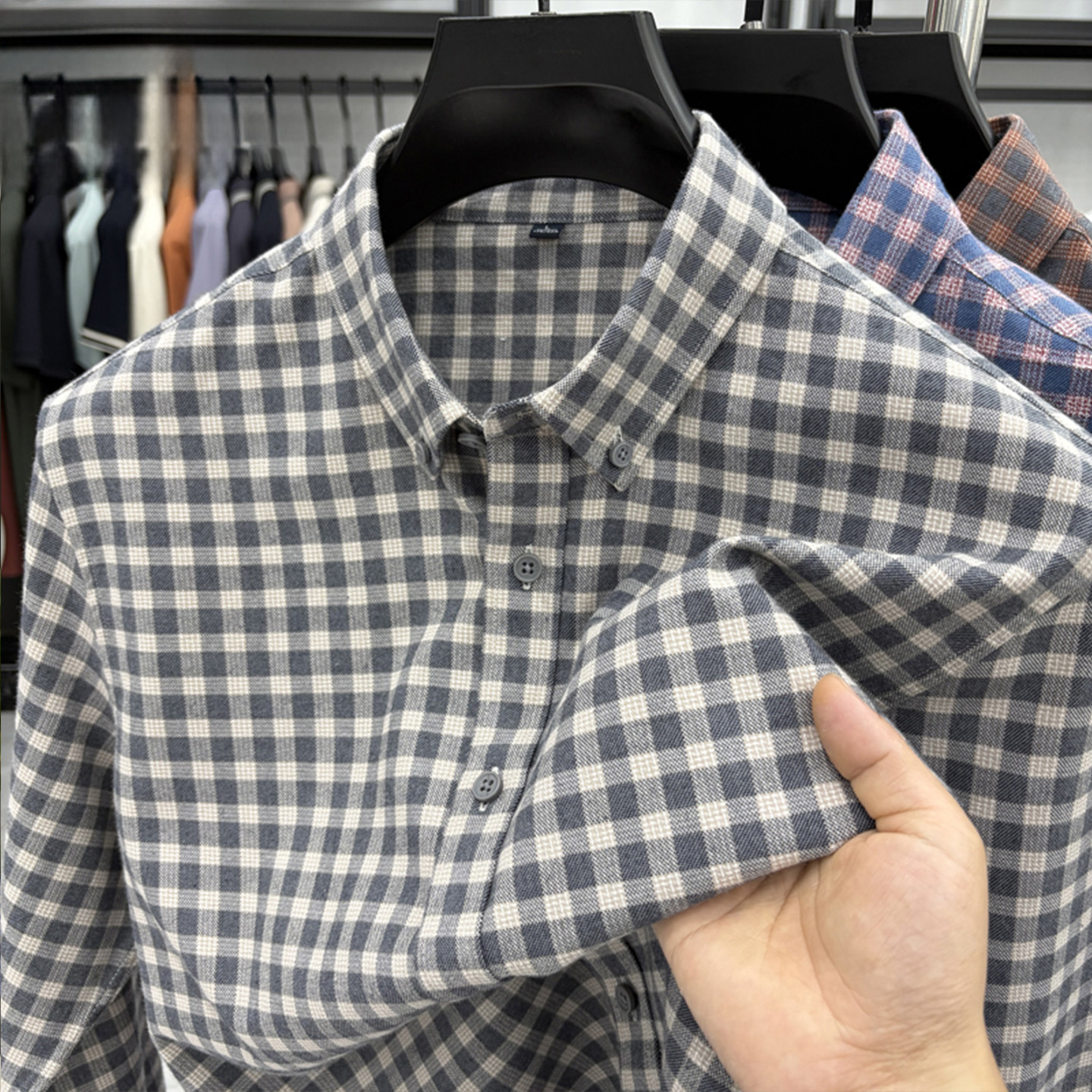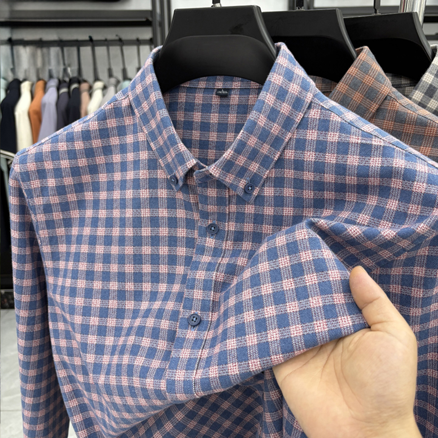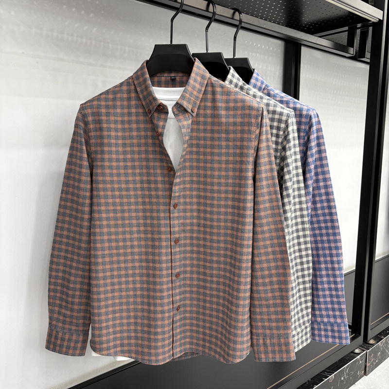 淘宝春秋新款100%纯棉格子长袖衬衫男士中年商务休闲磨毛衬衣男装潮