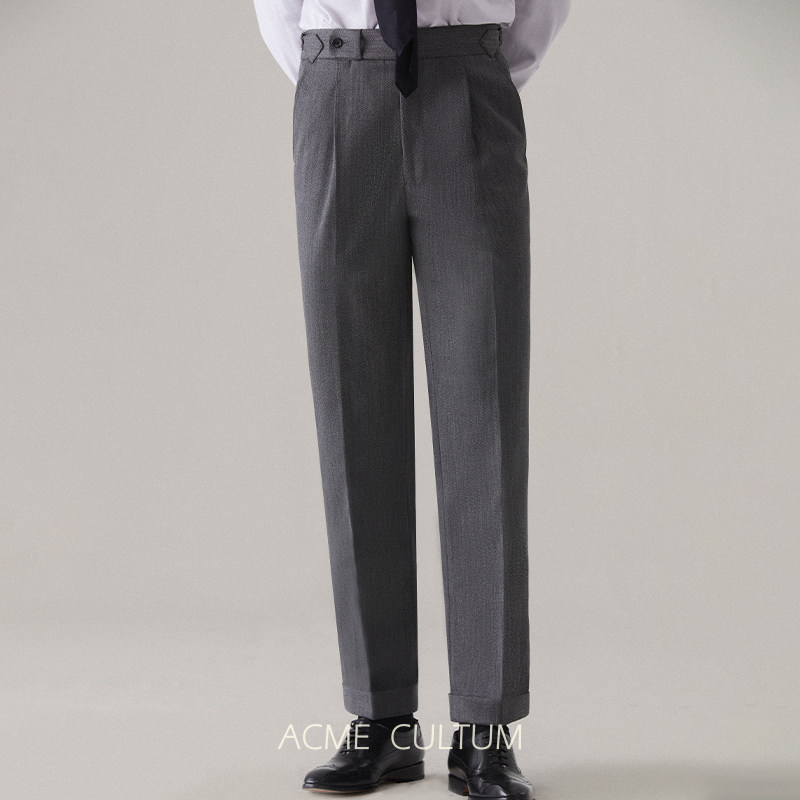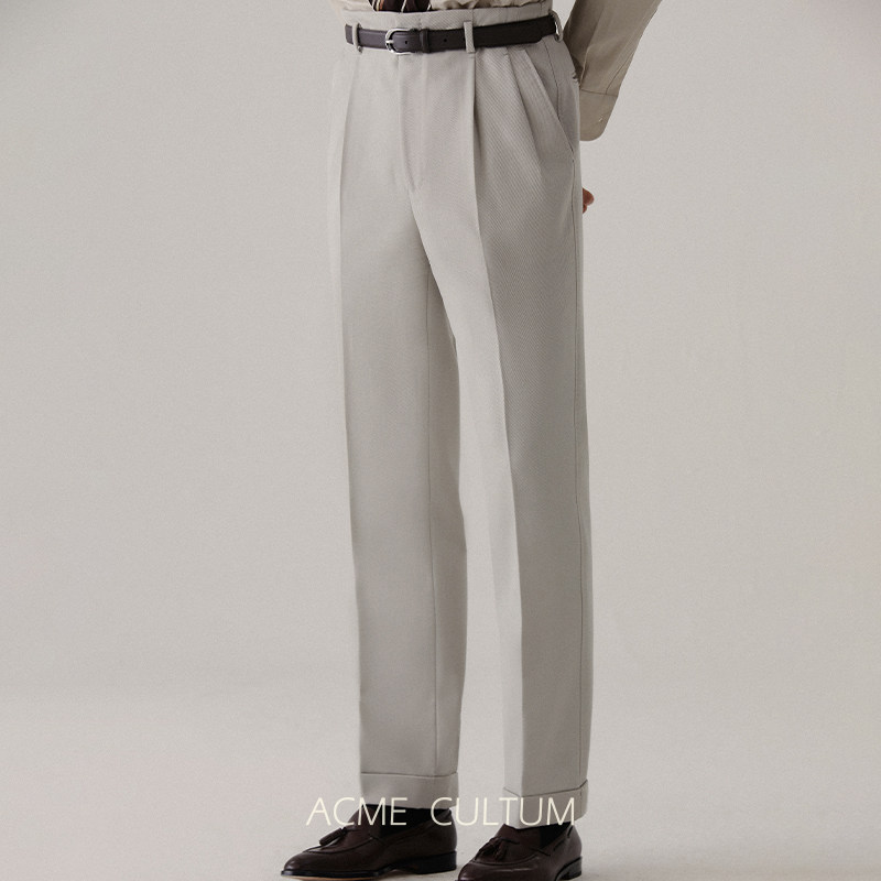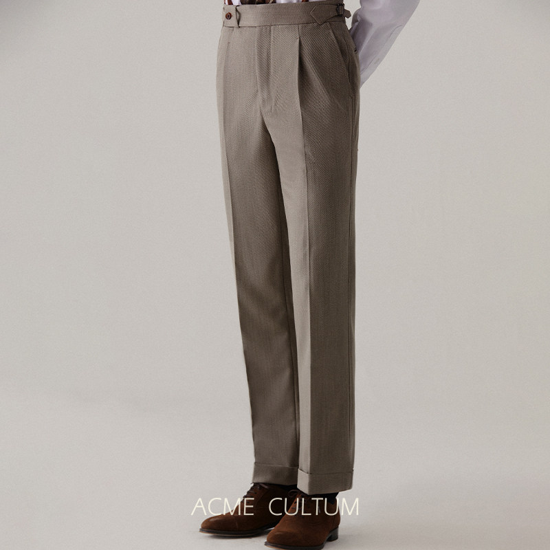 Acme cultum绅士盔甲100S羊毛骑兵呢高腰单褶西裤男商务正装长裤