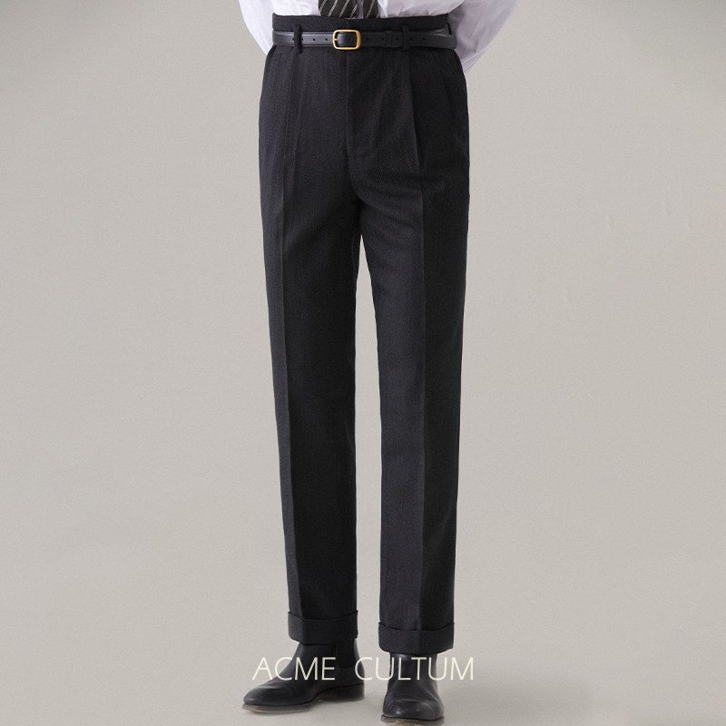 【100%羊毛粗花呢】CULTUM意式那不勒斯人字纹双褶高腰休闲西裤男