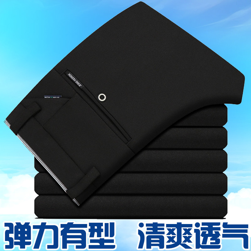 天春秋季男士休闲裤宽松直筒商务加厚西裤高弹力男裤黑色抗皱长裤子