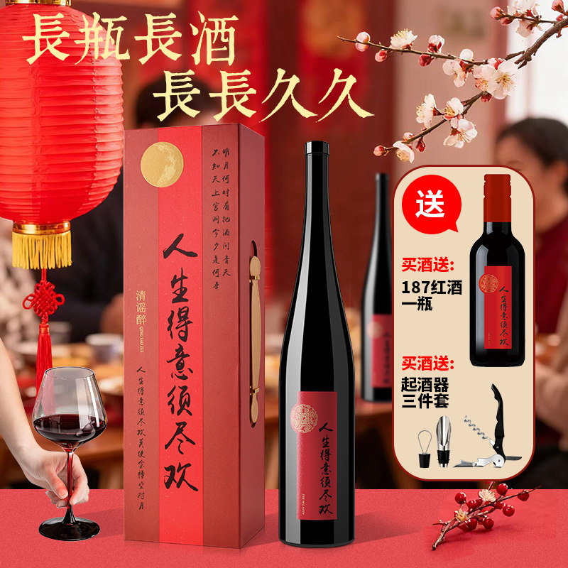 天猫清谣醉人生得意须尽欢干红葡萄酒红酒1.5L礼盒装宴会聚会婚宴送礼