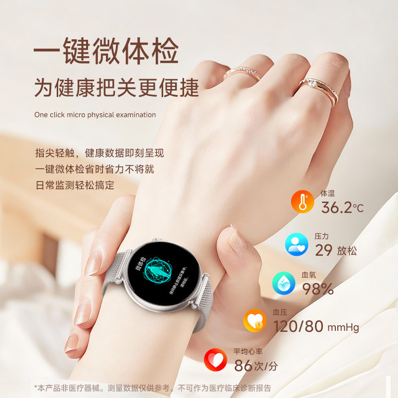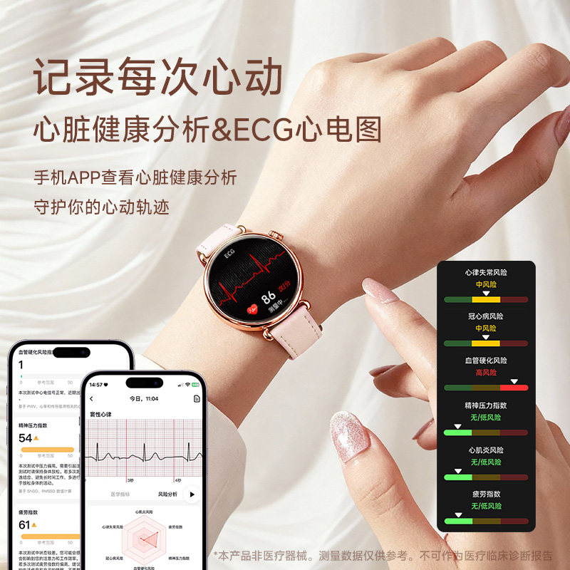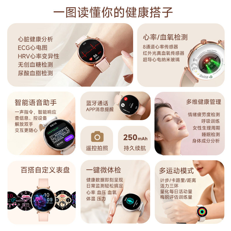 天猫【女神专属】高精度血压血糖风险评估智能手表心电心率蓝牙通话运动监测心率血氧生理期智能手环送女友送老婆