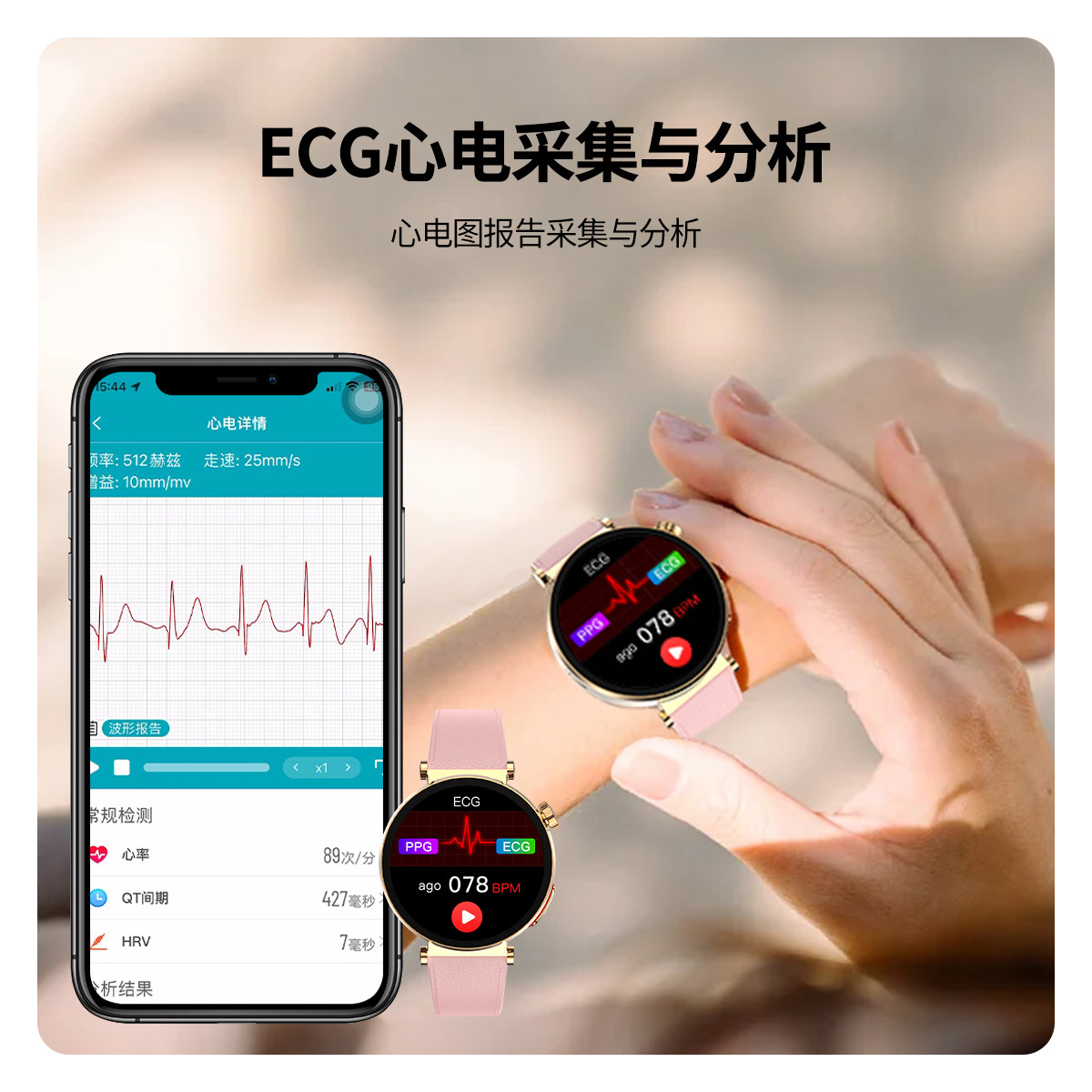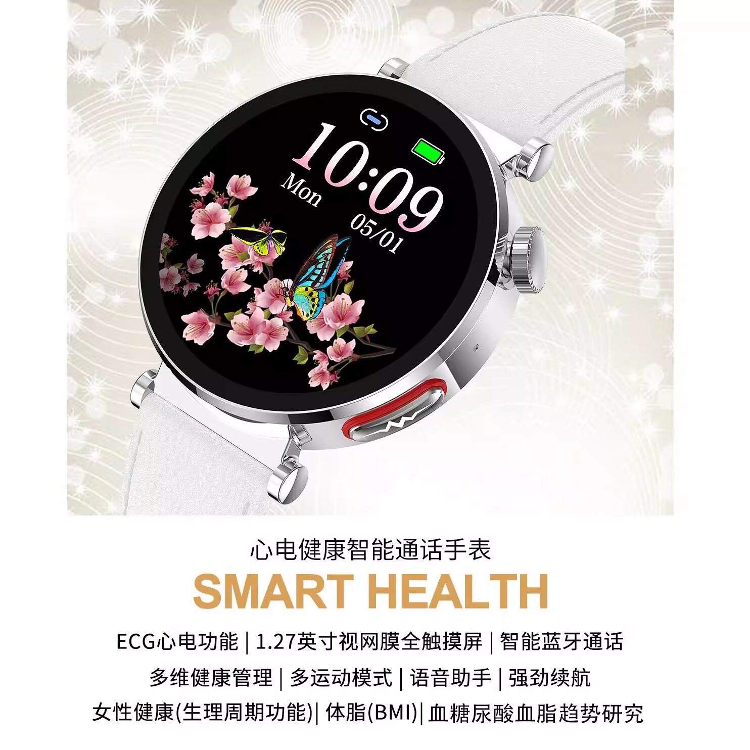 【女神专属】高精度血压血糖风险评估智能手表心电心率蓝牙通话运动监测心率血氧生理期智能手环送女友送老婆