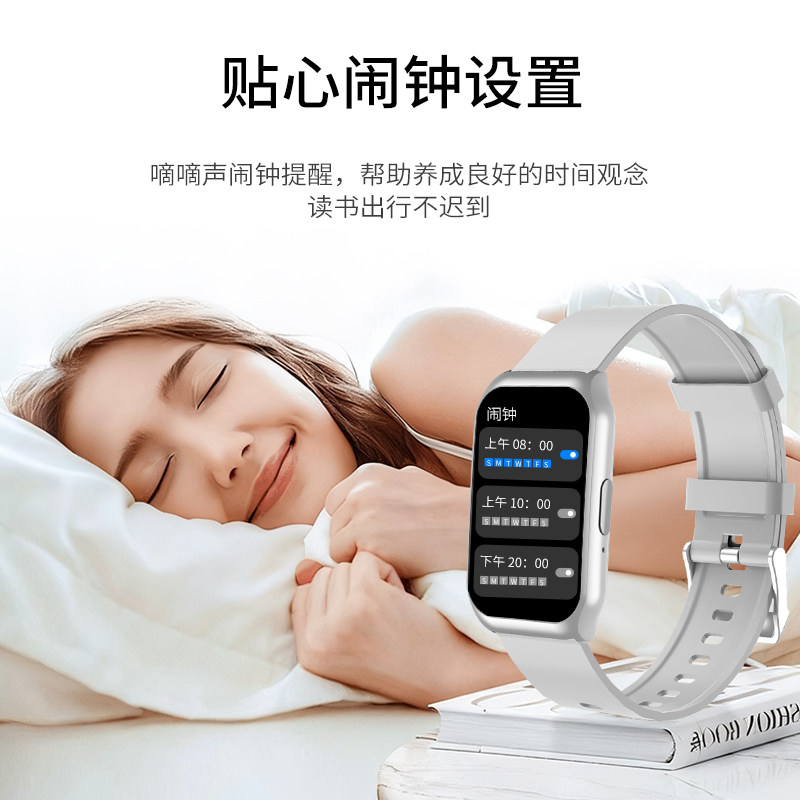 【精选】2026新款高颜值智能震动闹钟手环,专为女学生、青少年及初高中生设计。轻盈时尚外观,搭配多彩表带,彰显青春活力。具备精准时间显示、智能震动闹钟功能,上课静音提醒不扰人。内置24小时心率监测、睡眠分析与运动计步,助力健康管理。支持久坐提醒、闹钟日程同步,提升学习效率。IP68防水设计,日常洗漱无忧。长续航+磁吸快充,使用更便捷。不仅是看时间的电子手表,更是贴心健康伴侣,让科技与成长同行,陪伴每一天的精彩校园生活。