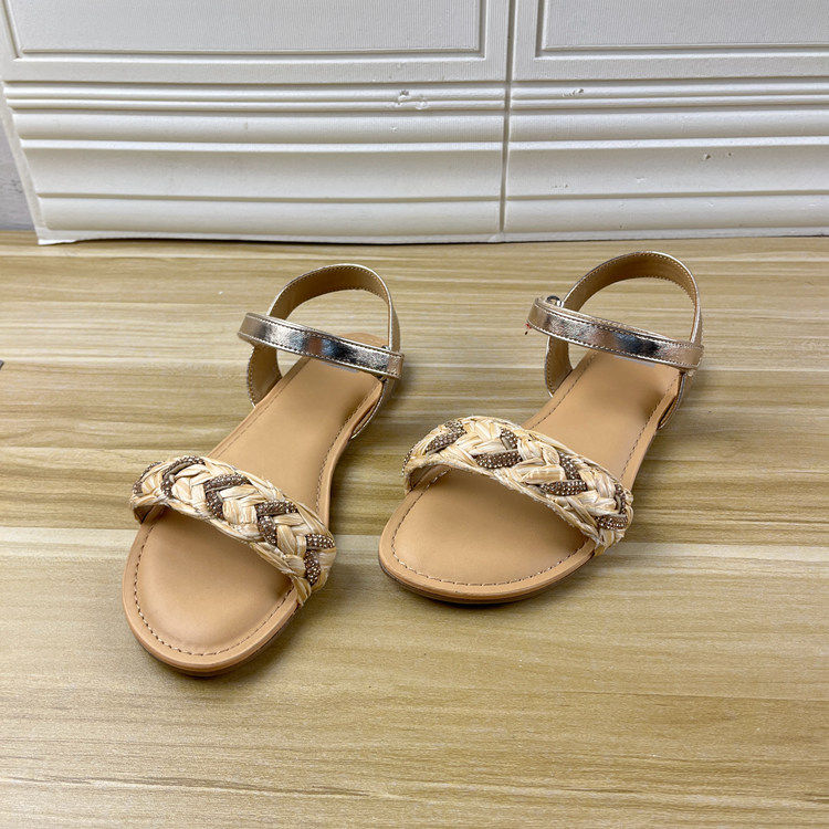 淘宝Lady Shoes外贸原单36码和37码杂款时尚圆头纯色一字扣百搭凉鞋