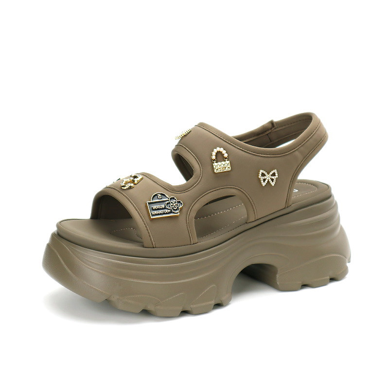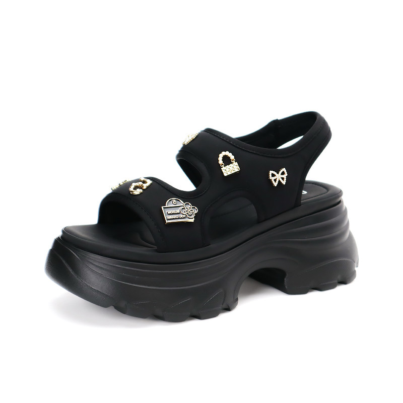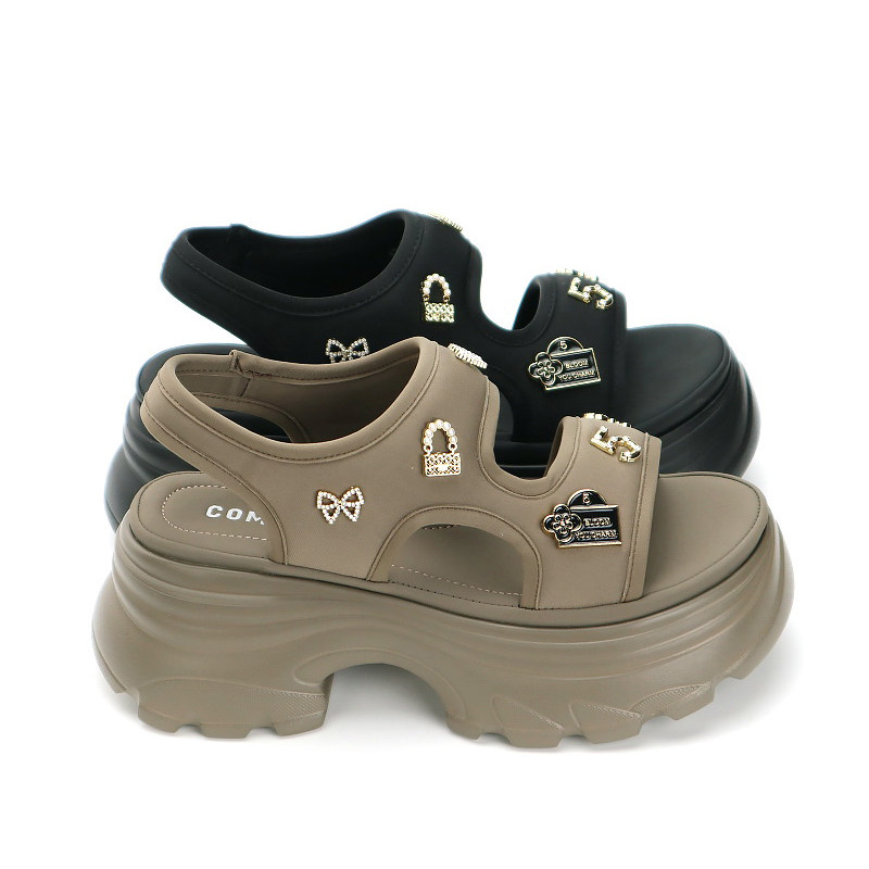 淘宝COMELY康莉2026新款厚底露趾休闲凉鞋水钻舒适沙滩女凉鞋KMD53289