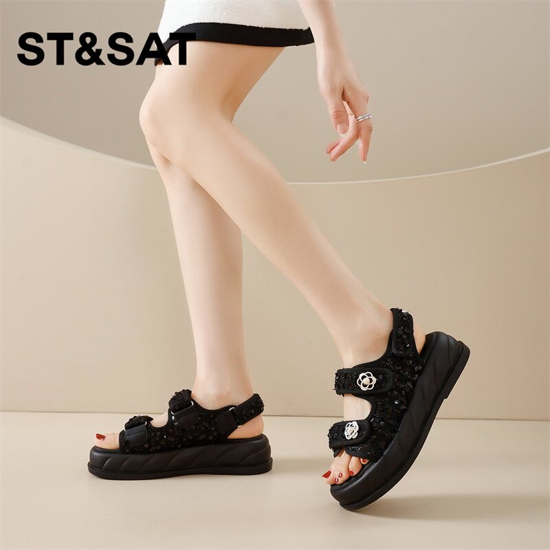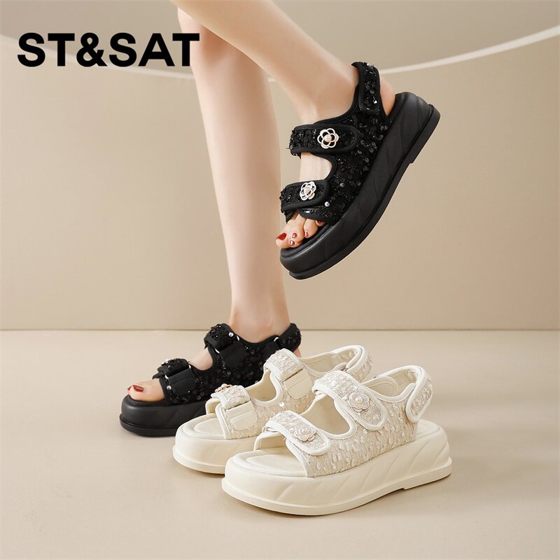 这款2024年夏季新款“星期六”一字带凉鞋,专为追求舒适与时尚的都市女性设计。采用简约一字带搭配精致珍珠与立体花朵装饰,优雅浪漫,轻松提升穿搭质感。厚底设计不仅增高显瘦,更提供全天候舒适脚感,适合长时间外穿。魔术贴闭合方式穿脱便捷,懒人必备,稳固贴合不同脚型。精选柔软透气材质,防滑耐磨鞋底,兼顾沙滩漫步、日常通勤与休闲出游等多场景需求。无论是搭配裙装还是裤装,都能展现清新甜美的夏日风情,是今夏不可或缺的百搭单品。