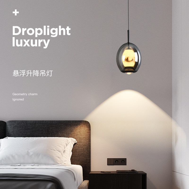 淘宝小月球灯可升降卧室床头吊灯意式高级感轻奢玄关床头灯房间吊线灯