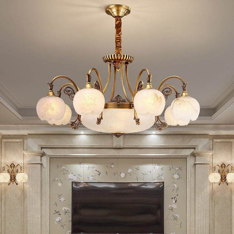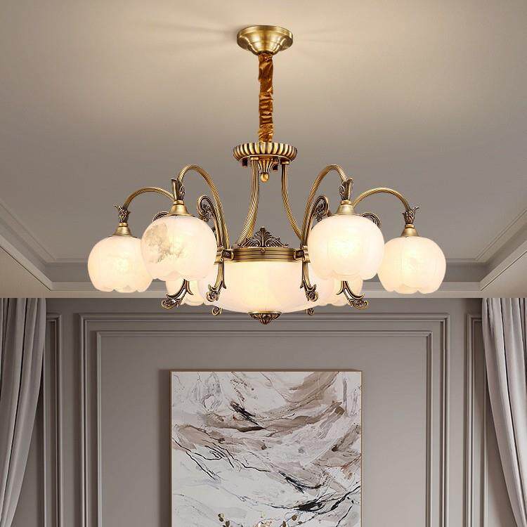 这款欧式吊灯融合复古与奢华元素,采用优质全铜材质精工打造,表面经抗氧化处理,持久光亮如新。灯体搭配天然云石灯罩,纹理细腻、透光柔和,营造温馨典雅的居家氛围。设计兼顾现代简约风格,线条流畅而不失大气,适用于客厅、卧室、餐厅及复式楼等多种空间。无论是挑高客厅的恢弘布局,还是精致卧室的温馨点缀,都能彰显主人不凡品味。全铜结构稳固耐用,云石质感提升整体档次,是集美观、实用与艺术性于一体的家居照明佳品,为您的家增添一抹欧式经典韵味。