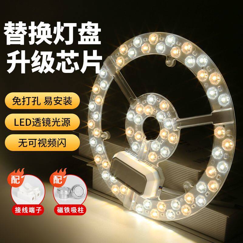 吸顶灯led灯芯卧室风扇灯替换光源护眼三色超亮全光谱圆环形灯盘